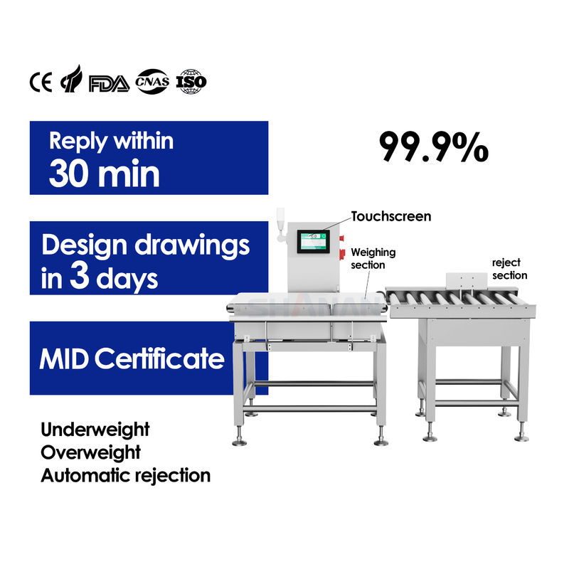 La pesatrice di controllo automatica di SHANAN è progettata per essere versatile e personalizzabile, rendendola adatta per l'uso in una vasta gamma di applicazioni.Dall'imballaggio e dalla trasformazione al controllo e alla selezione della qualità, questa macchina può gestire con facilità vari prodotti di diverse forme e dimensioni.